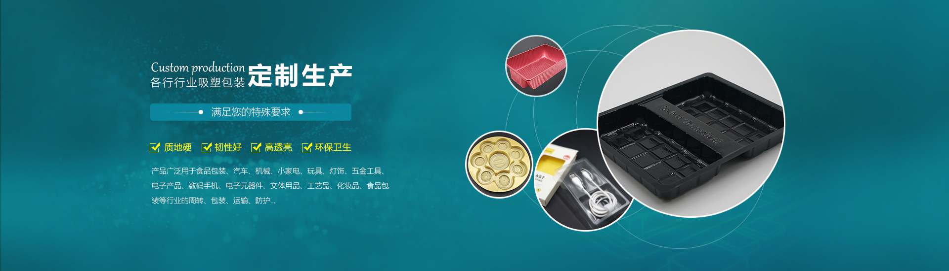 我司原材料品種主要有PVC,PET,PS,PP,PLA等,質(zhì)量上乘,可隨時(shí)滿足客戶的不同需求。我們可接受任意材質(zhì),任意尺寸規(guī)格,任意顏色的吸塑包裝定制。